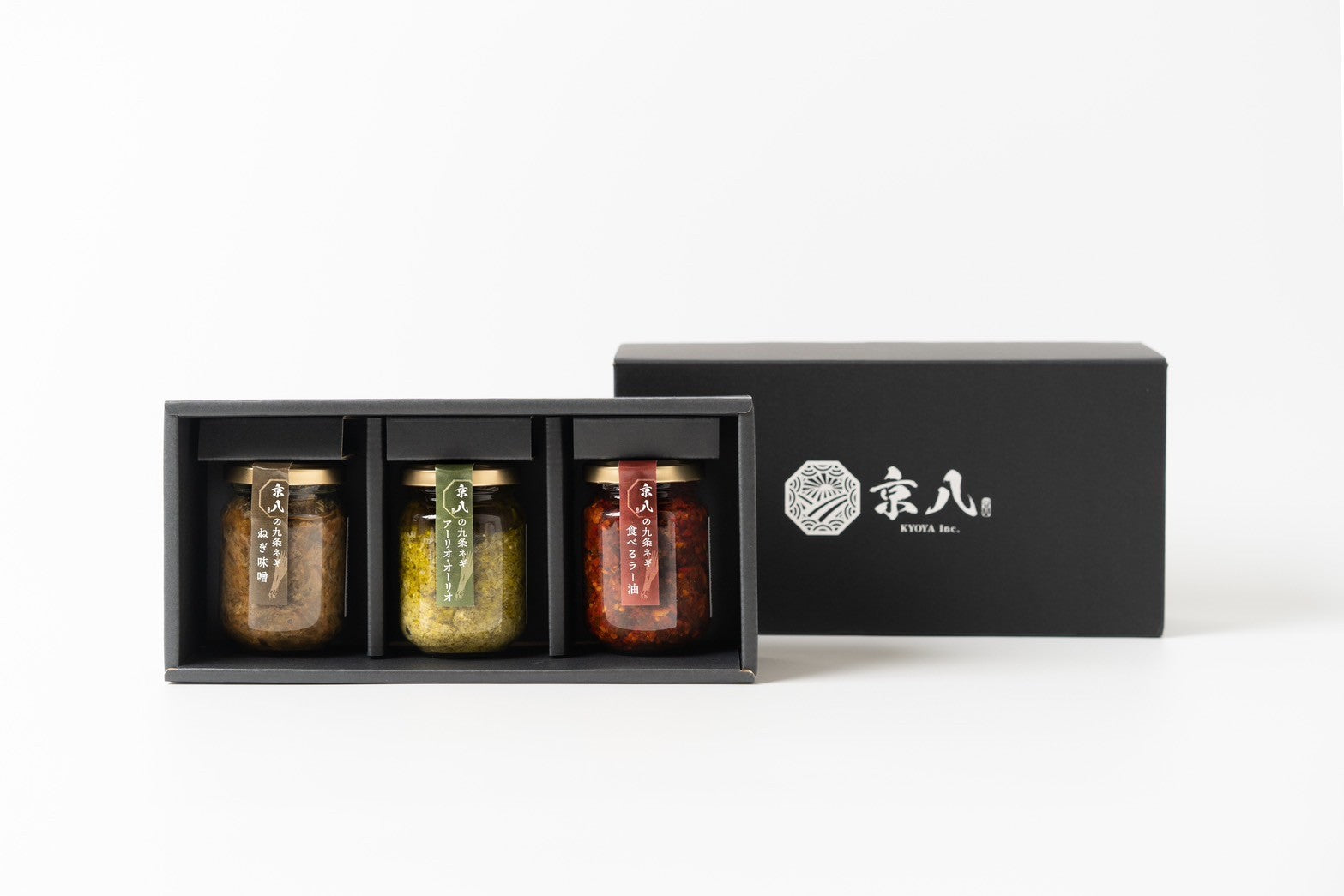 九条ネギをたっぷり使用した、無添加のビンシリーズ3種ギフトセット。(丸瓶タイプ・1個あたり100g)